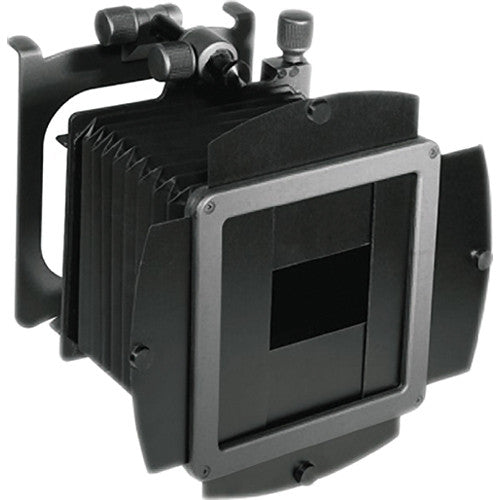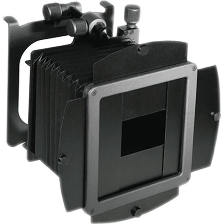 The Cambo C-341 Compendium Shade De Luxe helps to block stray light from reaching the lens and causing lens flare or ghosting. This shade features a self-supporting design, can be tilted upward and away from the lens, and is dedicated to Cambo 4 x 5" view cameras, where it attaches to the front standard. This De Luxe version also incorporates an adjustable filter slot for using rectangular filters, as well as four slots for vignetting plates.