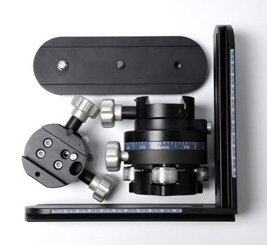 The Cambo CLH-500 Panoramic Leveling Head is intended for use with still cameras weighing up to 11 lb (5 kg) to produce stitched panoramas in both horizontal and vertical orientation. It mounts on any tripod with 1/4-20 or 3/8-16 threads, and features a three-point thumb-wheel leveling system for perfectly flat horizons. Disengageable detents are provided for 2, 6, or 8 shot 360º panoramas. With the included camera plate, both quick-release assemblies (on the head and on the L-bracket) allow 4" (100mm) of travel for rapid camera setup and perfect nodal-point alignment.