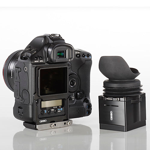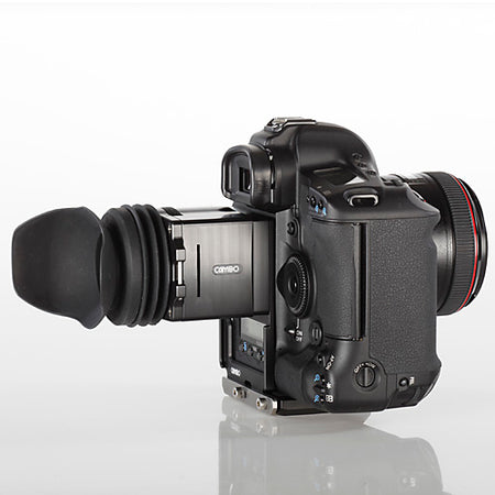 The Cambo CS-34 HDSLR Viewing Loupe 3 Set features a 3x magnification loupe, made from Schneider Kreuznach optics. An adjustable diopter allows the user to customize the loupe for their vision. The included bracket enables attachment to the camera's tripod mount, avoiding having to glue the frame to the back of the camera. The CS-34 is compatible with the Canon 1Dmk4 series and other similar camera bodies.