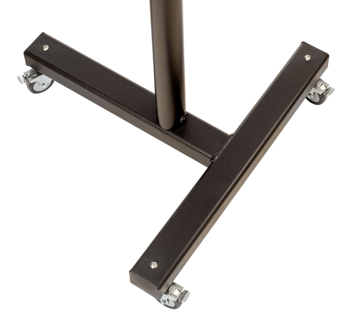 Welded T-Shape Base for the Mono-1 Studio Stand. Rolls on three swivelling castors. Each one individually lockable. An easy to move around yet stable platform.