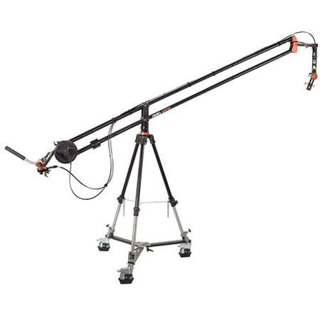 The included tripod supports cameras up to 66 lb (30 kg). The leg spread is fully adjustable but also incorporates a single position, 30 angle leg-lock. The built-in claw ball levels your camera quickly, even under the most uneven conditions. A chain brace is built-in. The included dolly for the tripod features three 5" wheels with brakes and cable guards. The dolly folds easily for transport.