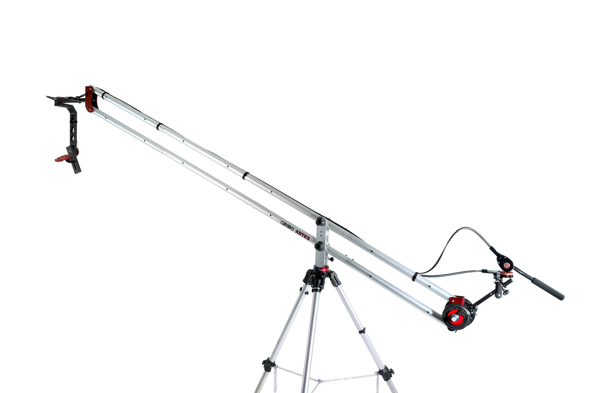 The video boom system provides a steady camera platform for an amateur videographer. The system is delivered as a partly mounted kit. After the first set-up, supported by clear instructions, there is only 1 key necessary for quick mounting and de-mounting. The boom system is modular extended and is therefore usable in at least 3 different set-ups. The central unit has 4 locking knobs for applying friction to the vertical boom movement and to make disassembling easy. The central rotation platform has a low friction-bearing system with a rotation brake. It fits to all 75 and 100mm video tripod cups.