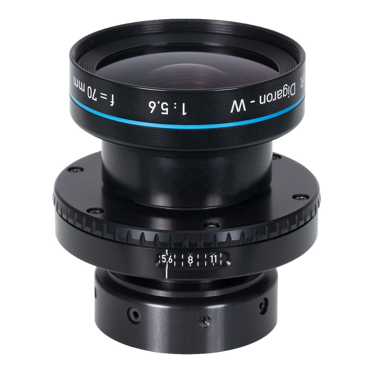 The WRA-2070 Lenspanel is dedicated to the use with Digital Backs with sensor activated electronic shutter and has a Rodenstock 5.6/70 HR Digaron-W lens with Aperture Only mounted in a helical focussing mount.