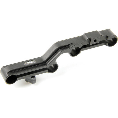 The Cambo 15mm Z-style Offset Rod Clamp allows you to offset the position of the rods. You can use the rod clamp to line up the matte box or follow focus with the eye position of the shoulder support.